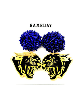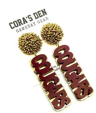 Copy of Cheer Pom Stud Gold Glitter/Black/Red